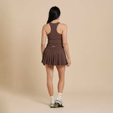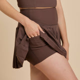 The Pearson Skirt is high rise and features classic court pleats in a light nylon. The pleated skirt features built-in shorts with pockets in our signature honey ribbed fabric. The Pearson Skirt is perfect for all activities, including pickleball, tennis, and golf.